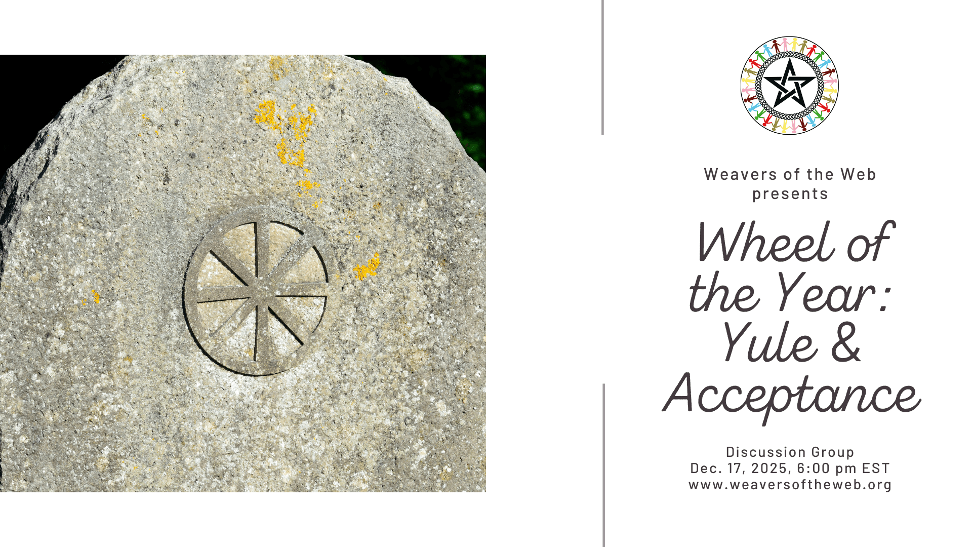 Weaving the Web is our very own discussion series, designed not only to provide a basic introduction to our own WISE-ATC beliefs and practices but also to encourage sharing of information between traditions. Our cycle of 52 topics returns each year, so if you miss one, you can always catch it next year.